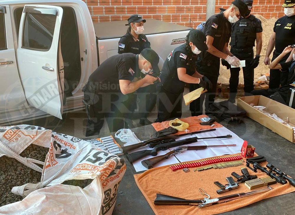 En cuanto al hombre mayor, fue detenido en su vivienda de la colectora del Acceso Sur, altura del barrio Papa Francisco. Lo esposaron por “tenencia ilegal de armas de fuego y estupefacientes”, la última calificación fue informada al Juzgado Federal de Posadas por violación a la ley 23.737. Pero también debería responder o aportar información para ubicar a su hijo de 26 años, quien se presume ahora se encuentra oculto en la jurisdicción de Santo Tomé, Corrientes.