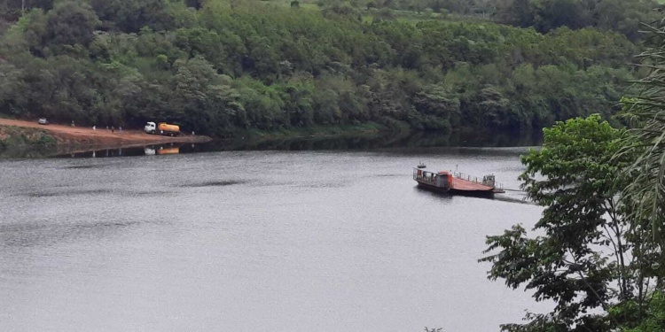 TEMPRANITO. Se vio el servicio de balsas volver a cruzar el imponente río Uruguay entre El Soberbio y Porto Soberbo.
