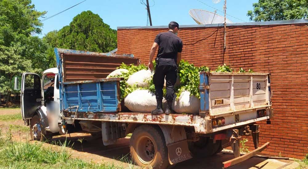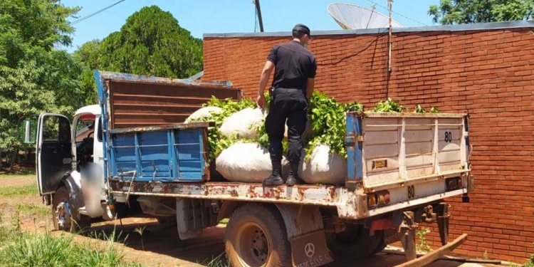 Un hombre de 36 años fue interceptado este mediodía por los efectivos de la comisaría de Campo Grande a bordo de un camión Mercedes Benz 1114. Transportaba un total de 13 raídos de hojas verdes que fueron cosechadas ilegalmente del campo de un productor y empresario de esta localidad.