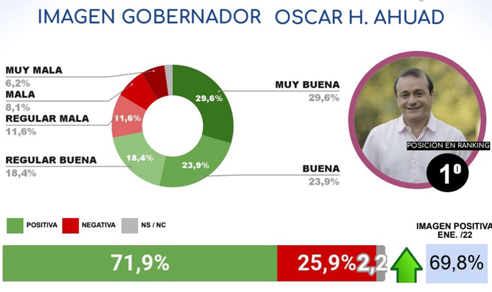 En el informe de CB Consultora que se publica de manera mensual, Herrera Ahuad venía dentro del top ten de los jefes de distrito provinciales. Pero, en el segundo mes del año resultó el de mejor imagen. En la lectura política, es un mandatario que no está alineado con los espacios más representativos de la “grieta” nacional (no es del FdT ni de JxC), lo cual potencia la posición provincialista que asumieron apenas unos pocos gobernadores.