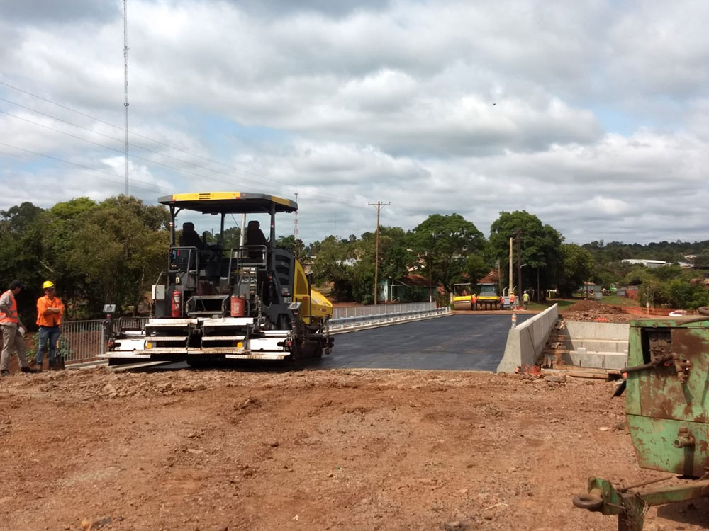 Continuan los trabajos de la construcción del nuevo puente sobre el arroyo San Francisco, en la avenida de Tránsito Pesado en Comandante Andresito. En los últimos días se completó la ejecución del asfaltado sobre el paso y la colocación de las barandas y protecciones reglamentarias, para delimitar el paso vehicular del peatonal.