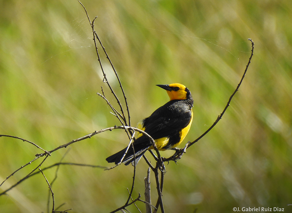El tordo amarillo es un ave pequeña y vistosa, de un tono amarillo intenso en gran parte del cuerpo y negro en las alas, cola y antifaz en los machos y este negro es reemplazado por marrón en las hembras. Habita en humedales, específicamente en pastizales naturales inundables. En Argentina, su distribución comprendía desde los pastizales misioneros hasta la provincia de Buenos Aires. Hoy, se estima que quedan en nuestro país alrededor de solo 600 individuos, en unos pocos relictos de hábitat en el sureste entrerriano, noreste correntino y esporádicamente en el sur misionero.