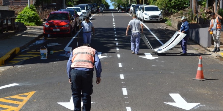 Los operarios se encuentran ejecutando la demarcación de las flechas de dirección para advertir a los conductores de los rodados sobre esta nueva disposición.