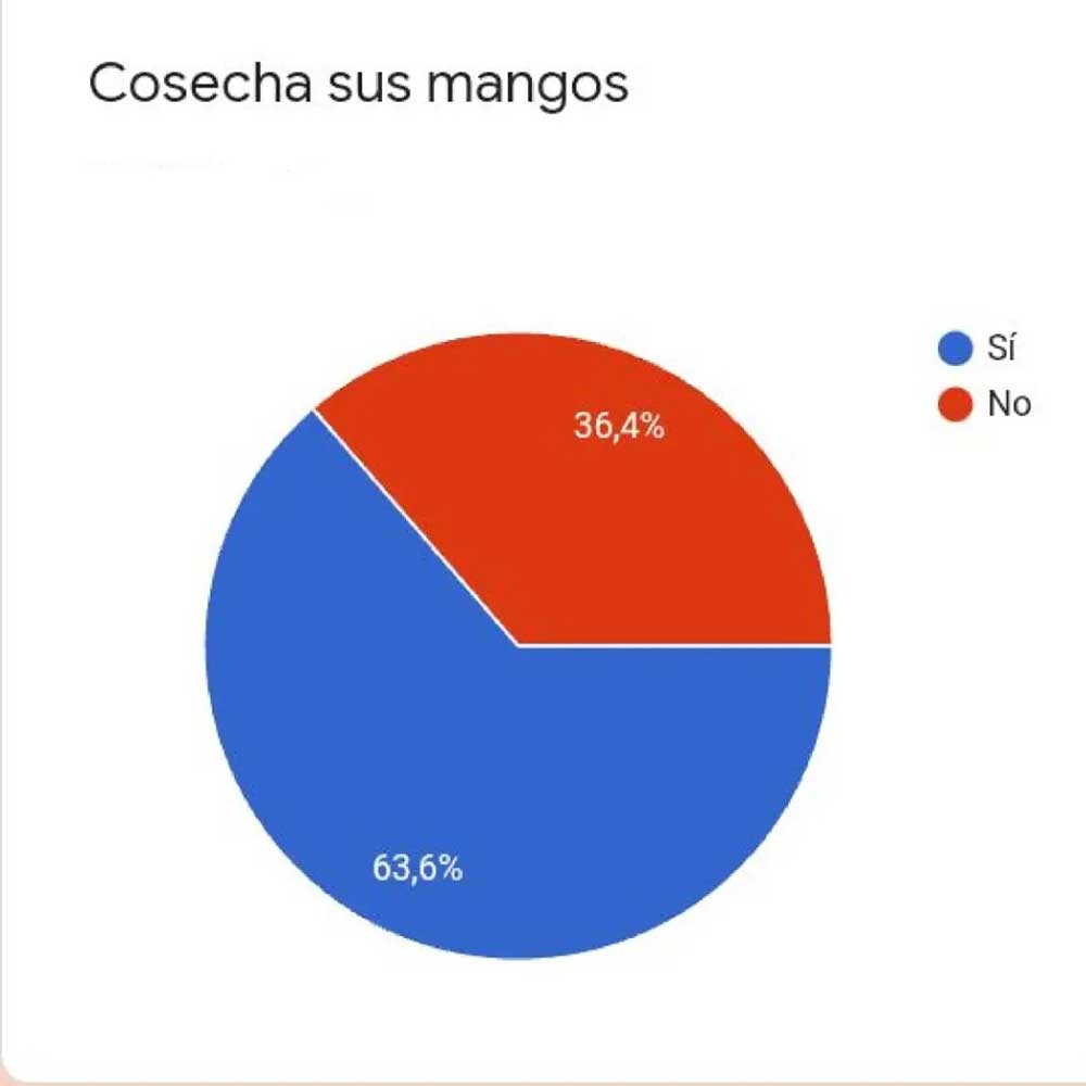 Respecto a la cosecha, el panorama es el siguiente: “el 37% de los propietarios manifestó que no cosecha sus mangos, pero el 63% que cosecha, no lo hace de una manera óptima. Es decir que estamos desperdiciando aproximadamente un 60% de este fruto”, explicó Fernando.