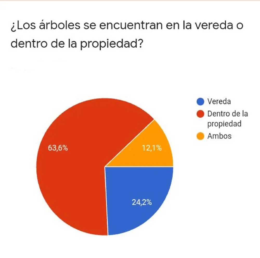 Con mayor detalle, el referente describió: “el 64% de los vecinos que poseen un árbol de mango, lo tiene dentro de su propiedad, el 24% en la vereda y el 12% en ambos espacios. Esto nos habla de que gran parte de los mangos depende de la gestión que puedan realizar los propios vecinos.”