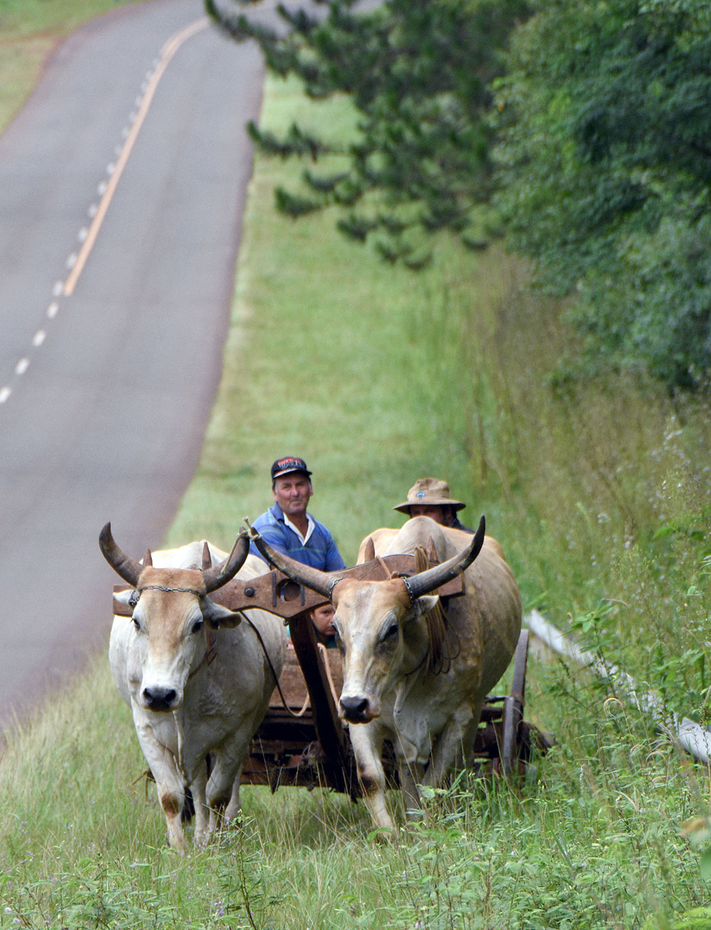 “Por iniciativa de un grupo de escritores de Puerto Iguazú, dos toros de 500 kilogramos cada uno desfilarían tirando una carreta. Era una buena idea. La carroza representaba a los colonos que con su trabajo en las chacras lograron desarrollar y fortalecer la economía de la provincia de Misiones. La carreta era bastante grande. Arriba del carro iban sentados dos escritores. Caminando a sus costados iban otros, vestidos muy elegantes, de traje, y con libros en sus manos.