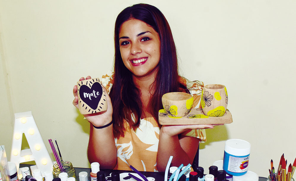 Con la llegada de la pandemia y el consecuente encierro, comenzó a buscar alternativas. Y se inclinó por un emprendimiento de mates de algarrobo, hechos y pintados a mano.