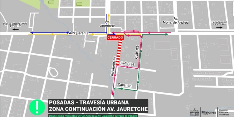 Esas alternativas se incorporan a las ya existentes, con las que los usuarios de Jauretche en sentido Itaembé Miní hacia Quaranta, podrán circular por la Av. Jauretche hasta el desvío por calle 136 y calle 129, o bien tomar avenida 147. Mientras que para el ingreso hacia el sur desde Quaranta podrán circular hasta la avenida 147 como vía rápida.