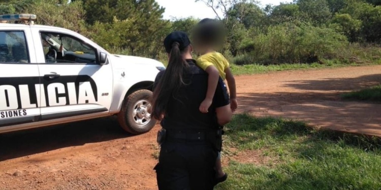 Esta mañana un vecino del barrio Cinco Bocas en Campo Viera alertó a la Policía que sobre la calle Eva Perón había un niño de aproximadamente 4 años caminando solo en la vía pública.