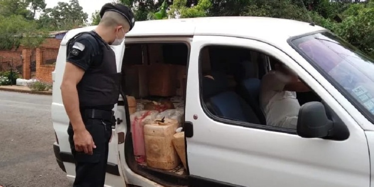 Los policías avistaron al rodado y, al momento de controlarlo, divisaron que en la parte posterior se hallaban varios bidones cargados con una sustancia que el conductor admitió que se trataba de combustible.