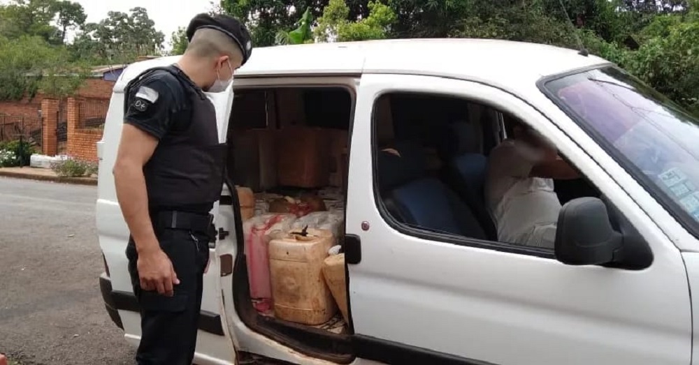 Los policías avistaron al rodado y, al momento de controlarlo, divisaron que en la parte posterior se hallaban varios bidones cargados con una sustancia que el conductor admitió que se trataba de combustible.