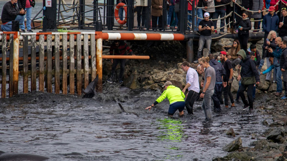 Decenas de delfines encallaron en las costas de Ushuaia