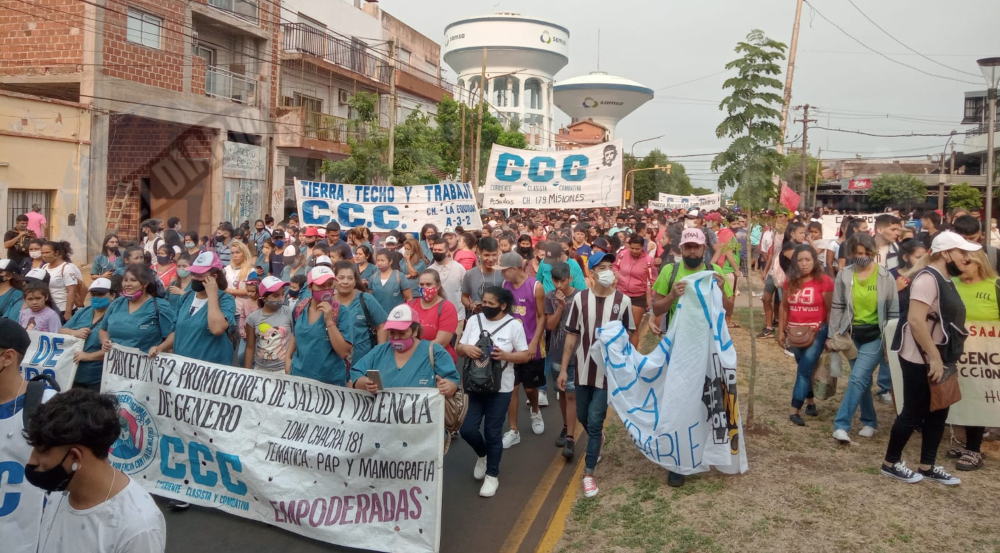 En la mañana de este miércoles, la organización Corriente Clasista y Combativa (CCC) marcha por las calles de Posadas. La concentración se dio antes de las 8 frente a SAMSA y luego una gran columna de personas comenzó a avanzar por las calles de la ciudad con banderas que rezan: “Ningún niño fuera de la escuela. Plan de Tierra. Techo y Trabajo. No al pago de la estafa macrista”.