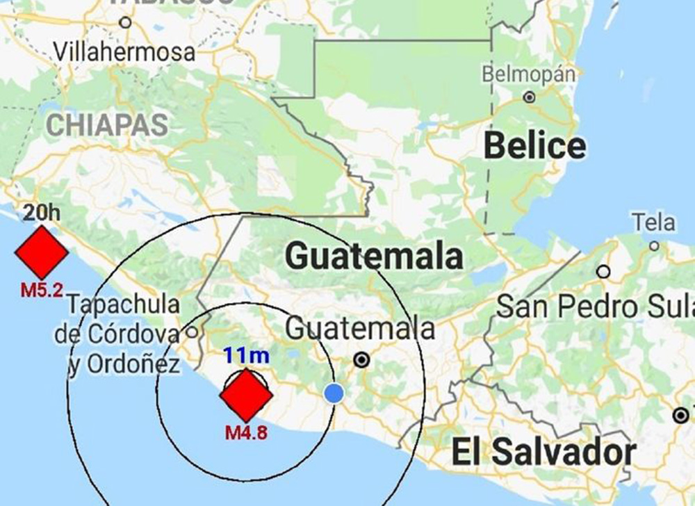 El Insivumeh detalló que el epicentro se situó a una distancia de 54 kilómetros de la ciudad de Mazatenango, a 57 de Retalhuleu y 84 de Escuintla, las tres ubicadas en el litoral del Pacífico.