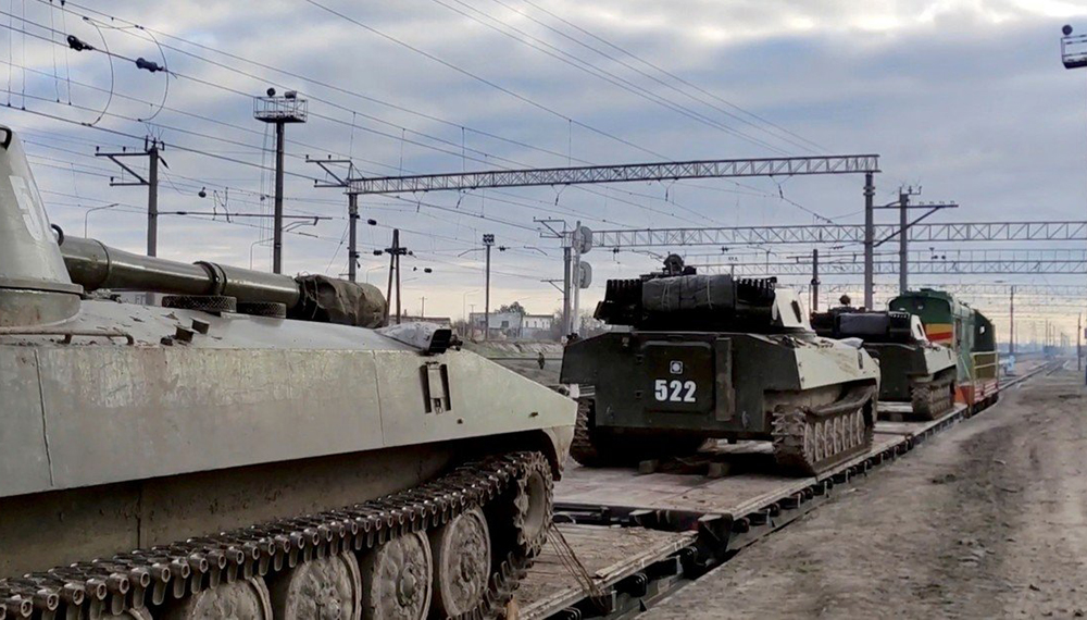 La televisión rusa mostró imágenes nocturnas de un interminable tren blindado que atravesaba el puente sobre el estrecho de Kertsch, construido por Rusia para conectar Crimea a su territorio. El comunicado dijo que los tanques, vehículos de infantería y artillería salían de Crimea por ferrocarril.