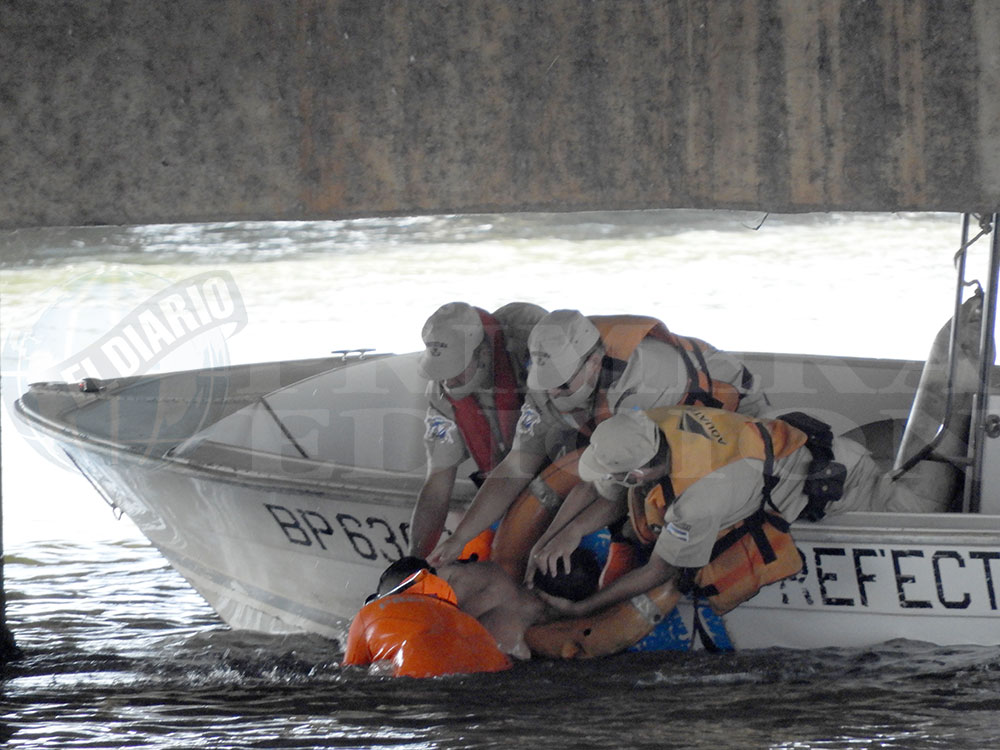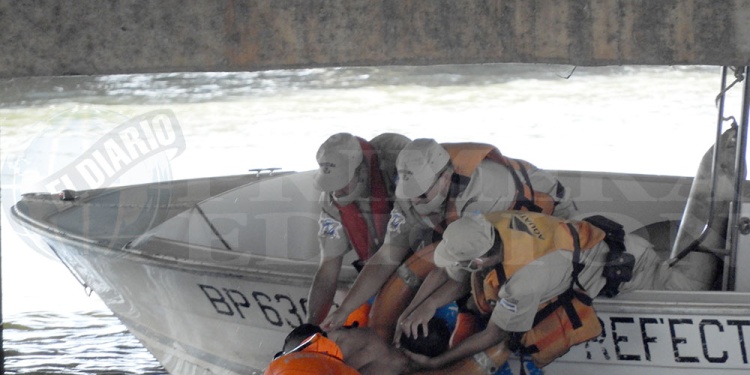 El arribo de una lancha de Prefectura apostada en el destacamento del puente San Roque González de Santa Cruz completó el procedimiento que aún dentro del arroyo fue difícil de cumplir porque el paraguayo a golpes intentó resistirse a los buzos y lancheros de la PNA.