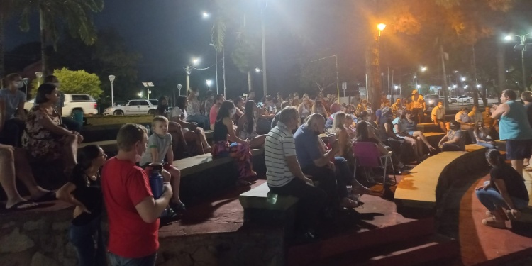 Durante la mañana de este jueves, un grupo de docentes se autoconvocó en la Plaza ‘Los Inmigrantes’ de esta localidad, para tratar temas relacionados a la organización del año laboral.
