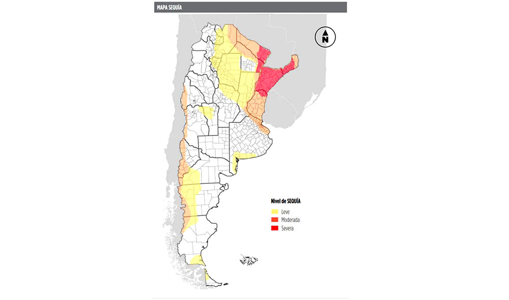 Organismos oficiales diseñaron un mapa del país con el efecto de la sequía en las regiones productivas durante enero y basado en la recopilación de datos al 11 de febrero. El panorama más complicado sigue siendo el NEA. El informe concluye que hay más de 10 millones de cabezas bovinas amenazadas y casi 2 millones de hectáreas de cultivos que ya han sufrido daños severos.