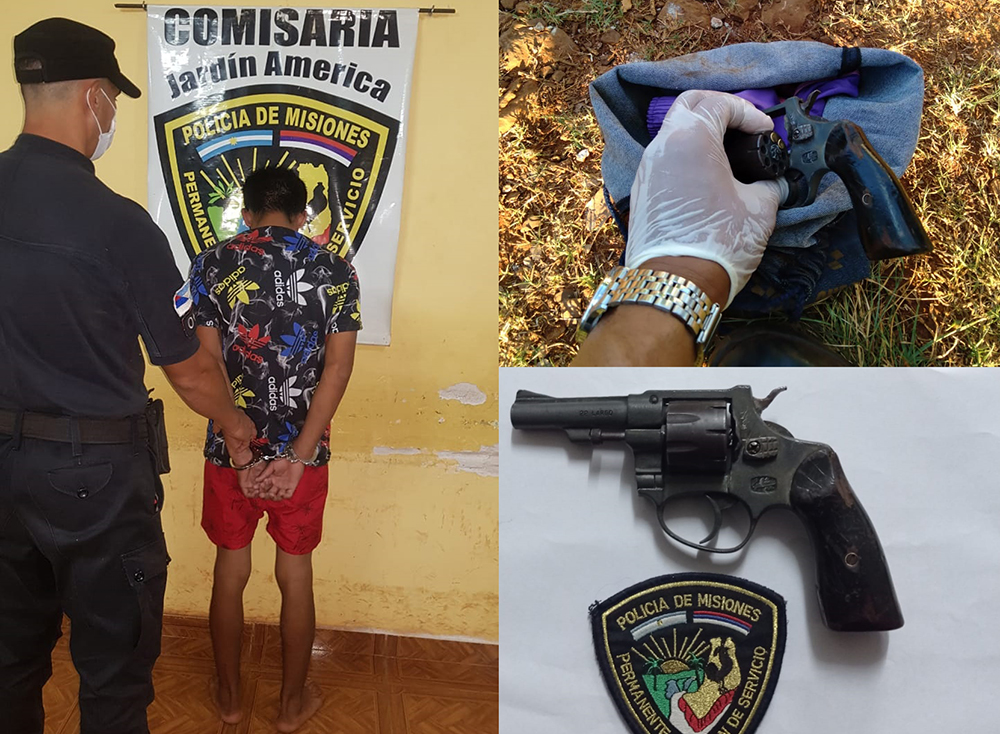 Los integrantes de la División Comando Radioeléctrico de la UR-IX, detuvieron en el barrio San Martín de Jardín América a un adolescente de 18 años, quien le habría efectuado varios disparos con revólver a un joven de 22 con intenciones de herirlo. Además, secuestraron el arma presumiblemente utilizada.