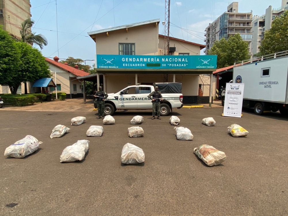 Integrantes de Gendarmería se dirigían a verificar focos ígneos en la zona del Cerro Santa Ana cuando fueron alertados de la existencia de bultos sospechosos escondidos a la vera de la Ruta 12 en la zona conocida como la entrada al Cámping Municipal “LA BOCA”, en el municipio de Santa Ana.