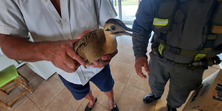 Este lunes, el alma mater de la Asoción Civil “Yarará en Acción”, el conocido taxidermista y técnico herpetólogo Amado Martínez fue en persona al rescate de un ejemplar de martineta colorada (Rhynchotus rufescens).