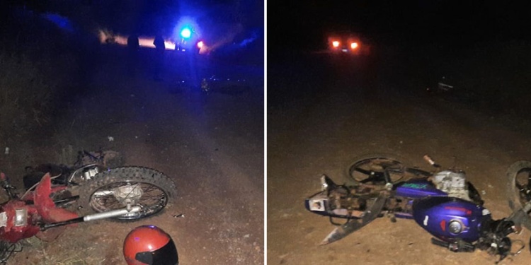 Dos motocicletas que se encontraban circulando en sentido opuesto chocaron anoche sobre la Ruta Provincial 205, una arteria de camino terrado y sin alumbrado público.