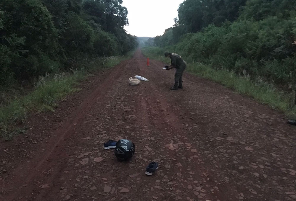 Anoche efectivos de Gendarmería Nacional dependientes del Escuadrón 11 “San Ignacio”, se encontraba realizando controles sobre los caminos secundarios, a la altura de Colonia Primavera, momento en el cual observan cómo una motocicleta, en la que viajaban dos ocupantes y que se desplazaba a gran velocidad, realiza maniobras evasivas ante el control, para posteriormente abandonar el rodado y darse a la fuga a pie. Durante la huida, uno de los motociclistas arrojó unos bultos que transportaba al costado del camino.