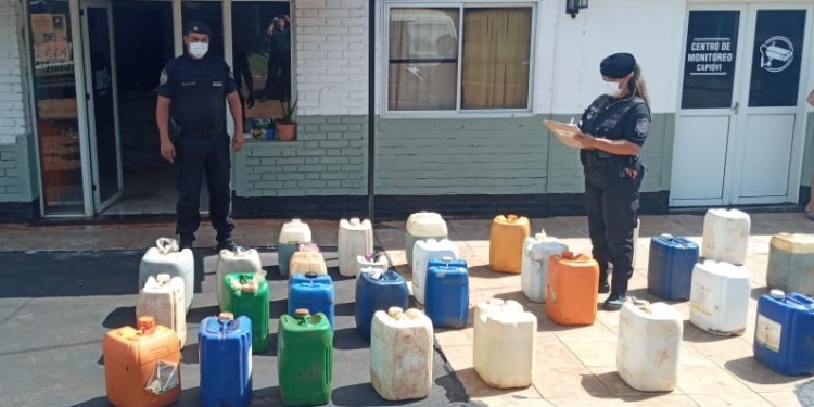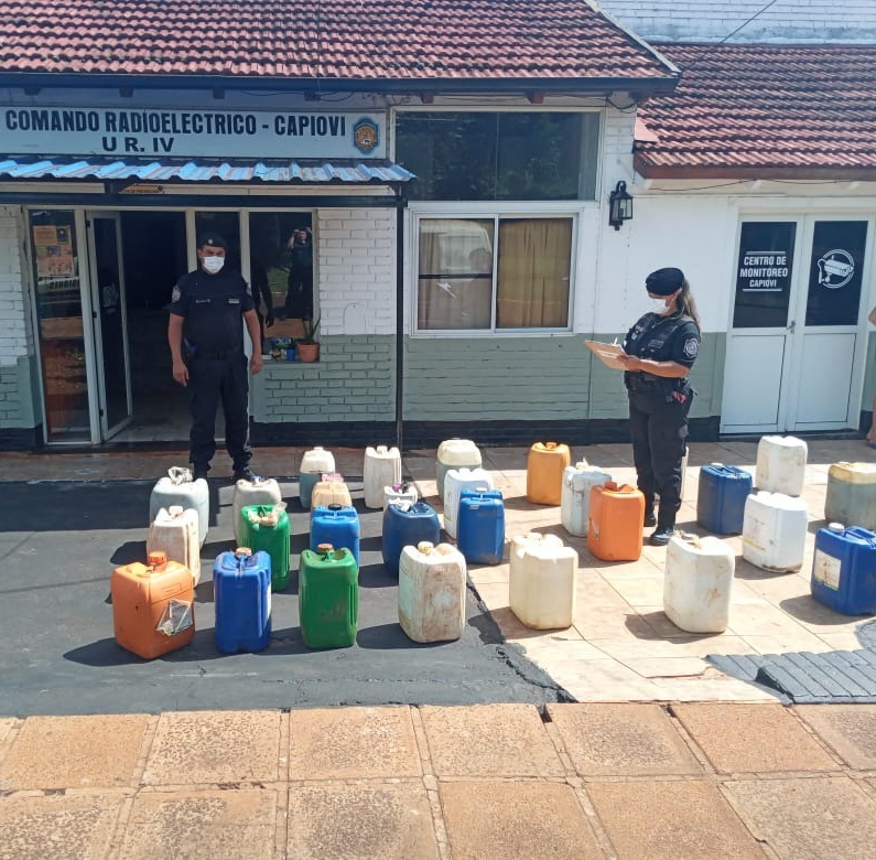 Este mediodía, en el barrio Santa Teresita de Capioví los efectivos del Comando Radioeléctrico local, incautaron 30 bidones que contenían unos 20 litros aproximadamente de combustible, los cuales eran transportados irregularmente en un utilitario.