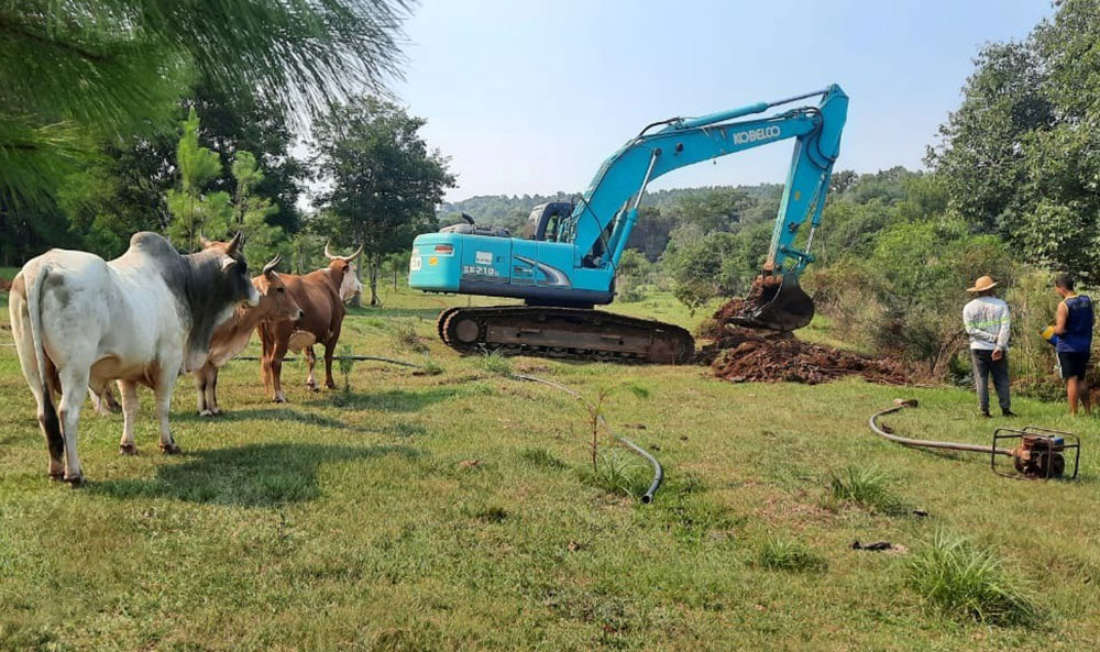 En Cerro Corá se planificó hacer entre 40 y 50 reservorios nuevos, al mismo tiempo trabajan en la limpieza y restauración de otros donde se retira el barro para permitir que vuelva a surgir agua del suelo. Las tareas están avanzadas en varias chacras de productores del municipio.