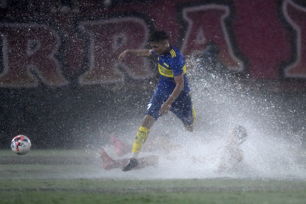 En un partido más cercano a una película que a una actividad deportiva, Independiente y Boca igualaron anoche 2 a 2, bajo un diluvio increíble que azotó la ciudad de Avellaneda por la cuarta fecha de la Zona B de la Copa de la Liga Profesional.