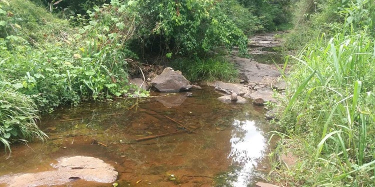 ARROYO. Casi seco y estancado que abastecía de agua la aldea Kokué Poty.