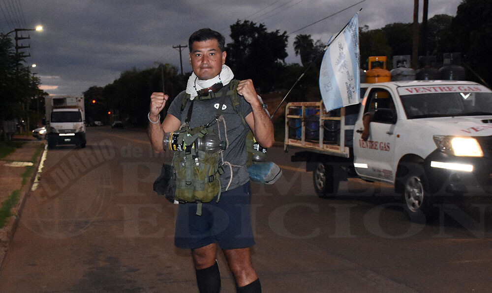 La primera vez fue el año pasado cuando partió desde Resistencia, Chaco, hacia Puerto Iguazú en bicicleta, en esta oportunidad realizará el recorrido a pie y espera llegar hasta la Ciudad de las Cataratas para posteriormente dirigirse hasta Bernardo de Irigoyen.