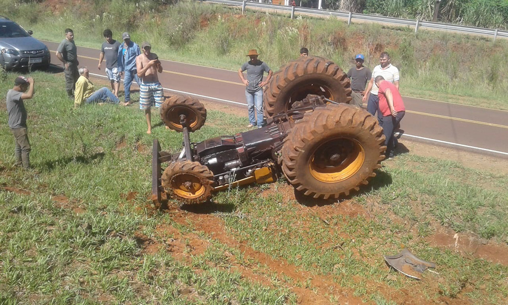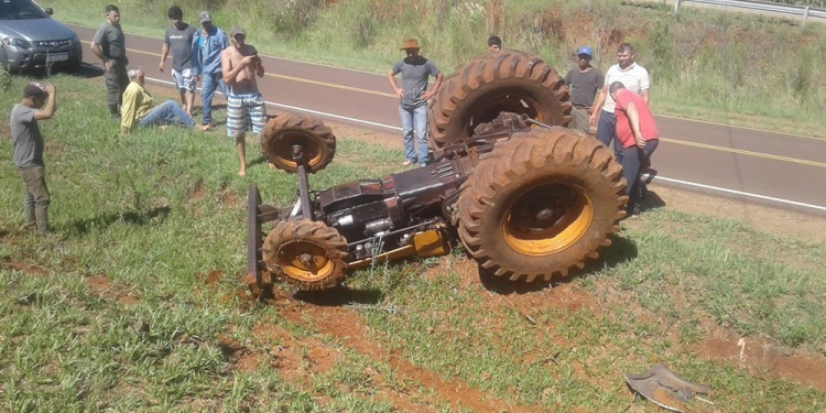 Un tractor agrícola Vlamet 85 HP despistó en la mañana de este viernes hacia un barranco, a un lado de la Ruta Provincial 221.