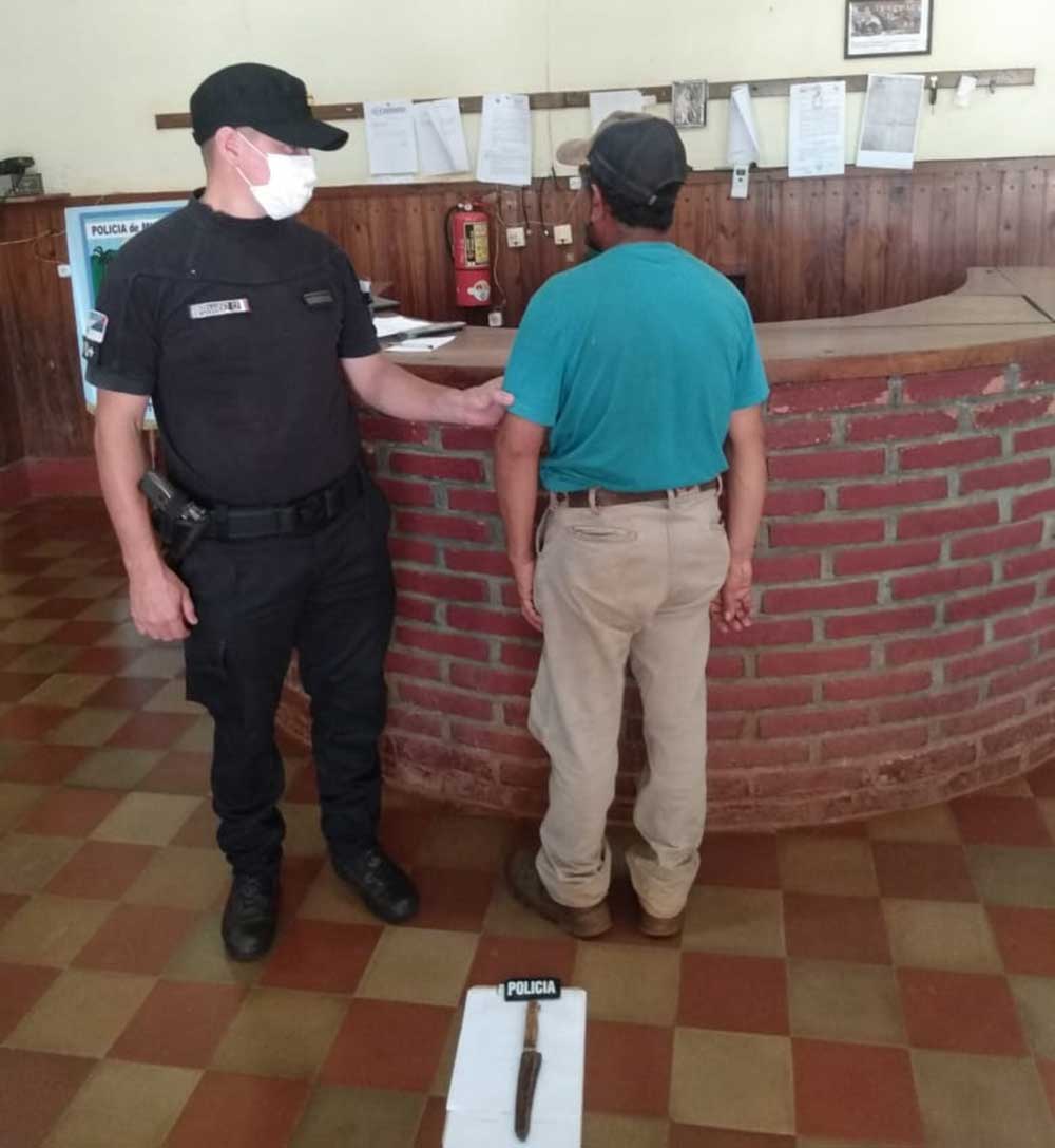 Por disposición del Juzgado de Instrucción N.º 4 de Apóstoles, los efectivos de la comisaría junto a la División Investigaciones, llegaron hasta una vivienda ubicada en las avenidas Justo José de Urquiza y Papa Francisco, donde detuvieron al sindicado y le incautaron un cuchillo tipo “puñal” el cual presumiblemente utilizó para el ataque.