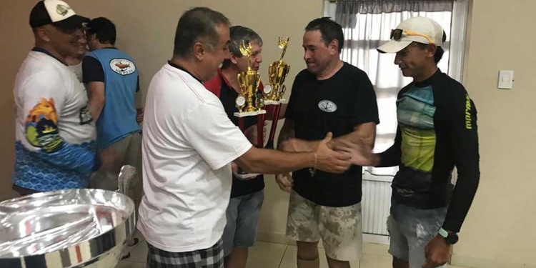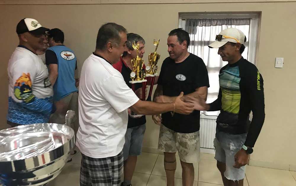 A FESTEJAR. Domínguez y Myslicki, ayer, en la entrega de premios. La dupla se impuso con 166 piezas capturadas.