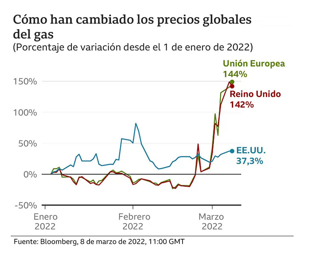 Sin embargo, los precios en Reino Unido y EEUU siguen subiendo significativamente debido al efecto global que genera la escasez de suministro.