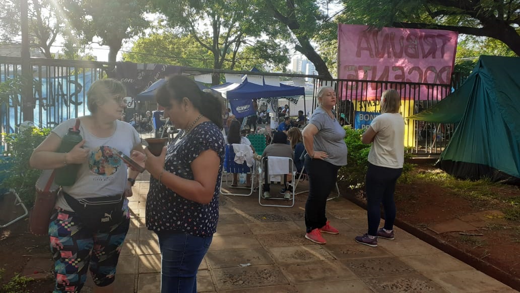 En Posadas, los educadores del Frente Docente continúan con el acampe dentro y fuera del Consejo General de Educación y ratificaron la continuidad de la medida hasta la reapertura de la discusión salarial. Esta mañana se sumarán al acampe contingentes de educadores que viajan desde el interior.