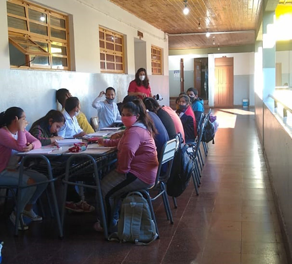 Lógicamente, para poder hacerse oír en medio de un espacio abierto, las docentes deben hablar casi a gritos, “la verdad es que es complicado para todos y la situación es una falta de respeto tanto para los alumnos como para nuestros docentes”, lamentó la directora.