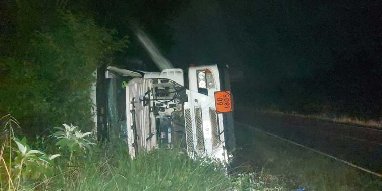Una vez en el lugar del hecho, identificaron al conductor del camión marca IVECO. Se trata de un joven de 29 años que circulaba por la arteria mencionada en sentido norte-sur, transportando ácido fosfórico. Por causas que se tratan de establecer, despistó y terminó volcando sobre la banquina.