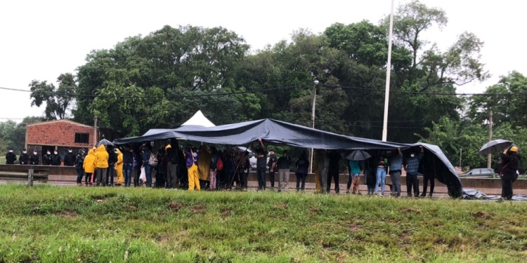 El corte de la ruta 12 se lleva a cabo desde este mañana antes de la rotonda de ingreso a Garupá, y aunque hay un gran dispositivo de seguridad a cargo de la policía, los manifestantes, apoyados por organizaciones sociales como el MTE, siguen la protesta bajo la lluvia. Hay un desvío vehicular por el centro.