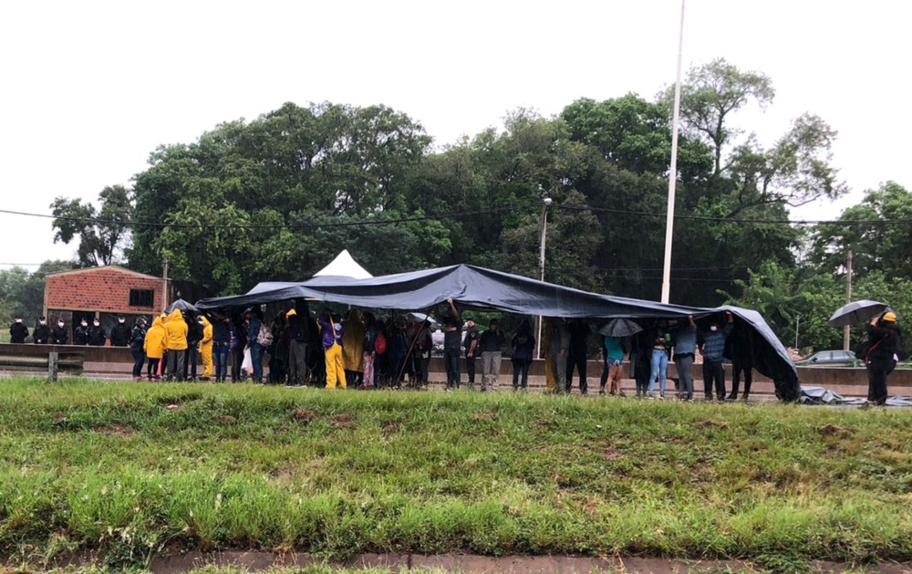 El corte de la ruta 12 se lleva a cabo desde este mañana antes de la rotonda de ingreso a Garupá, y aunque hay un gran dispositivo de seguridad a cargo de la policía, los manifestantes, apoyados por organizaciones sociales como el MTE, siguen la protesta bajo la lluvia. Hay un desvío vehicular por el centro.