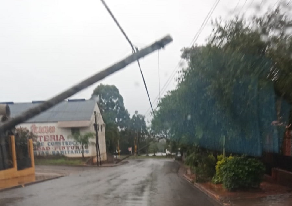 Las ráfagas de vientos que pudieron haber superado los cincuenta kilómetros por hora provocaron también caídas de árboles y roturas de gajos en distintos puntos de la ciudad. También provocó la caída de postes de líneas de distribución de energía eléctrica de baja y alta tensión. Esto provocó el corte de energía eléctrica por varias horas en la Capital de la Madera.