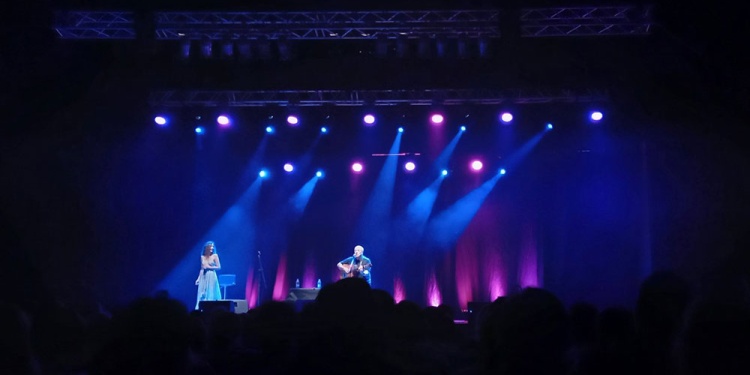 Ante la atenta mirada del público y luego de unas cuantas canciones, se sumó a la escena la cantante Camilla Faustino, quien acompaña en la música a Toquinho desde hace ya seis años.