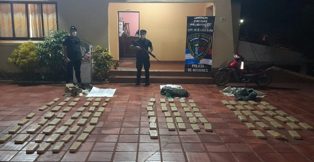 Un motociclista fue detenido tras una breve persecución cuando transportaba más de cien kilos de marihuana en Eldorado, mientras que una segunda motocicleta logró darse a la fuga.