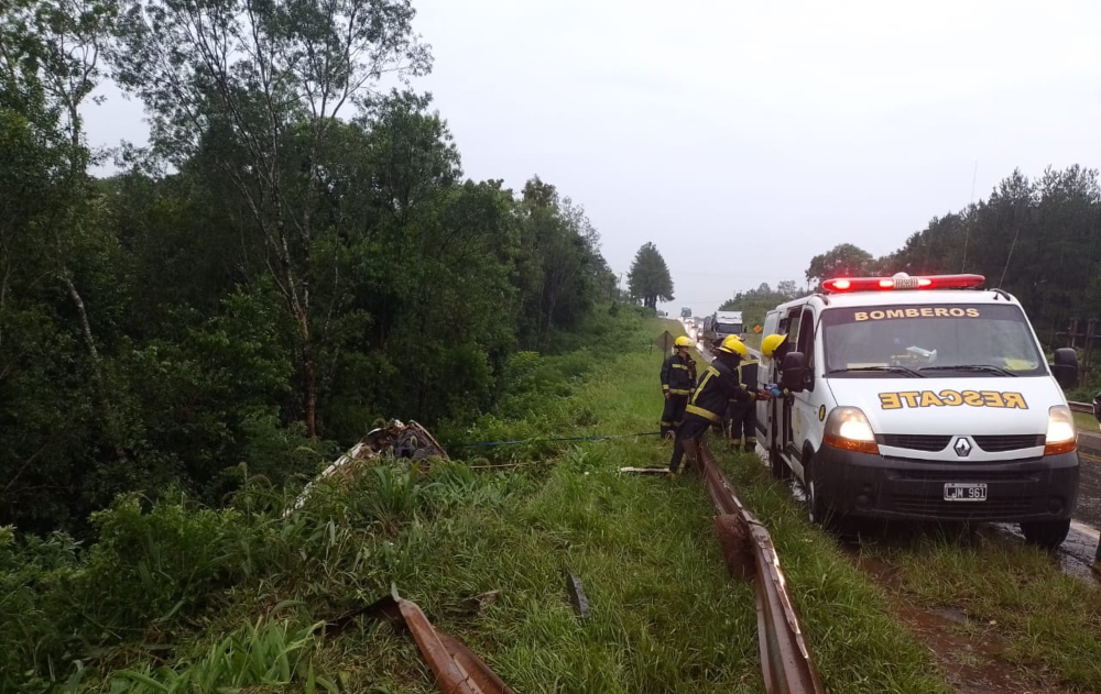 Según pudieron establecer, el conductor iba a bordo de una camioneta Toyota en sentido Iguazú – Posadas cuando perdió el control del rodado, traspasó el guardarraíl y terminó volcando en un barranco.