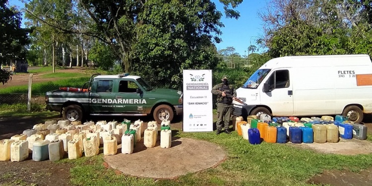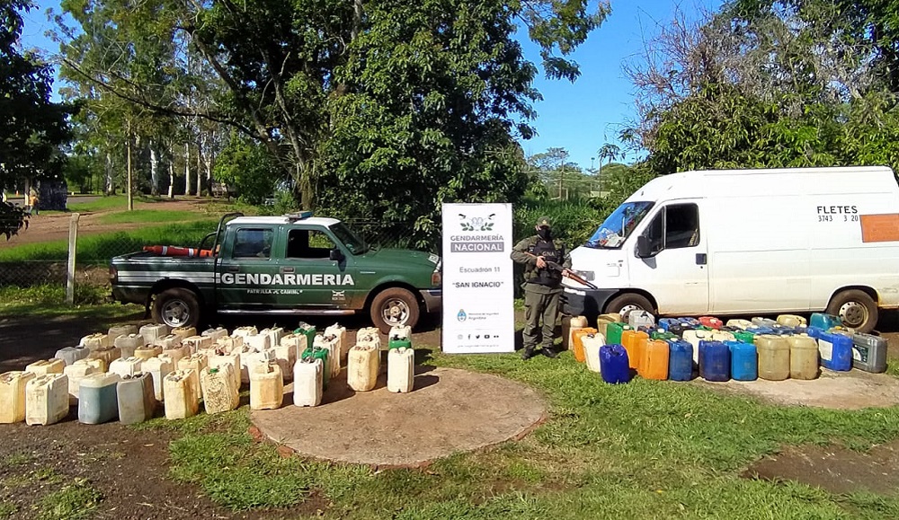 Integrantes del grupo “El Alcázar” de Gendarmería Nacional, dependiente del Escuadrón 11 San Ignacio, lograron el secuestro de gran cantidad de bidones cargados con combustible que eran transportados de manera ilegal en una camioneta.