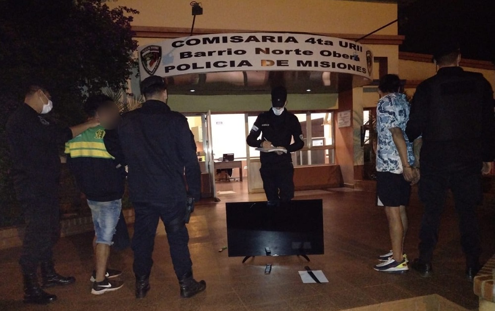Dos hombres de 31 y 20 años fueron detenidos en horas de la madrugada de este domingo en la calle Canal Torto del barrio Norte de Oberá, sospechados de haber ingresado a la propiedad de una mujer y robarle un televisor LED.