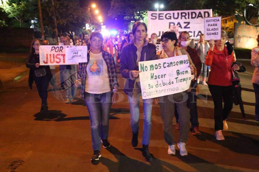 Unas 300 personas participaron ayer de la marcha en pedido de seguridad, paz y justicia que convocaron los comerciantes tras la muerte de Gladis Gómez (39), la mujer asesinada el mes pasado en un intento de asalto en el negocio donde trabajaba.