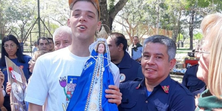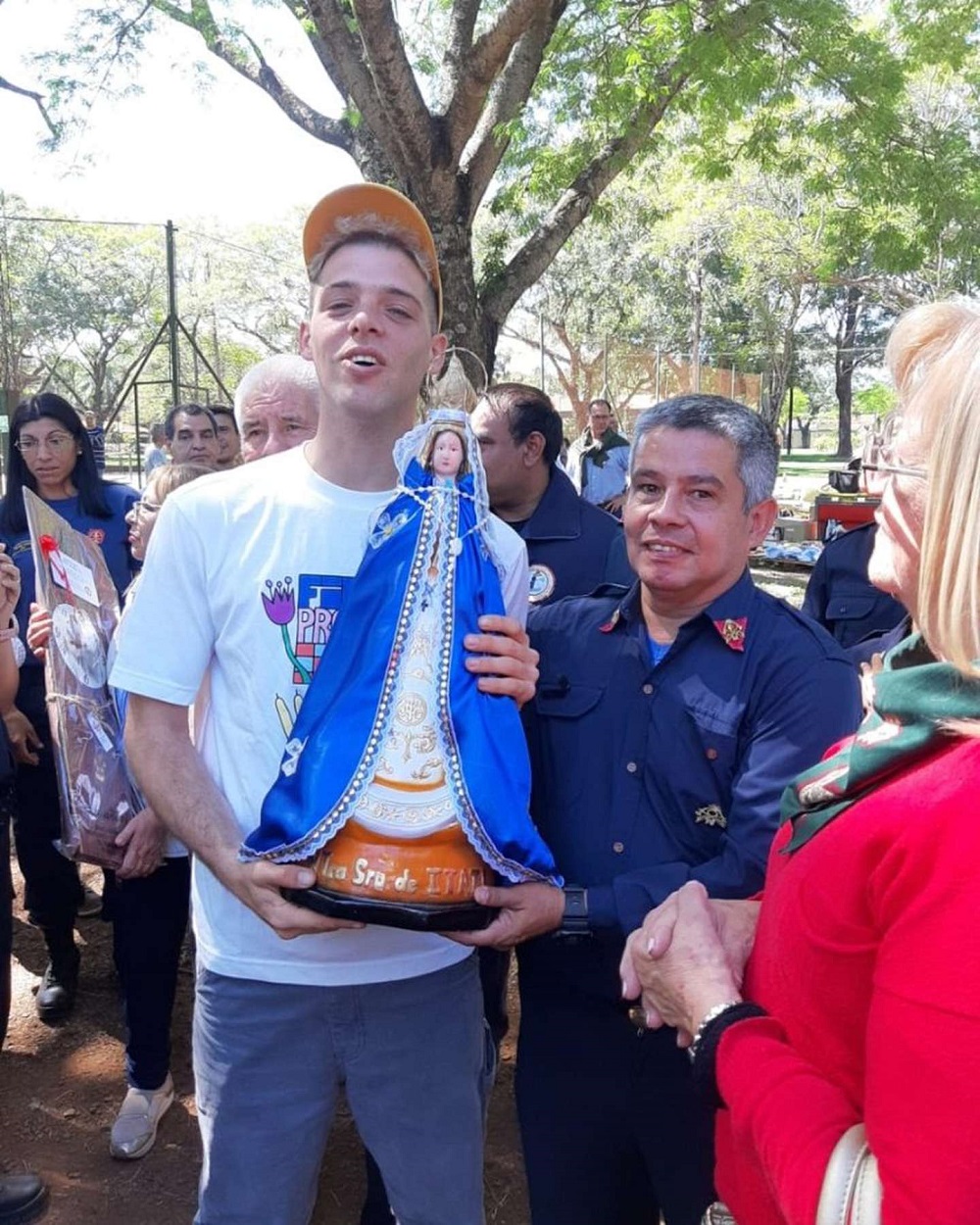 El joven compartió luego fotografías y videos del encuentro con más de 100 bomberos en el predio correntino. Además, mostró lo donado a cada cuartel.