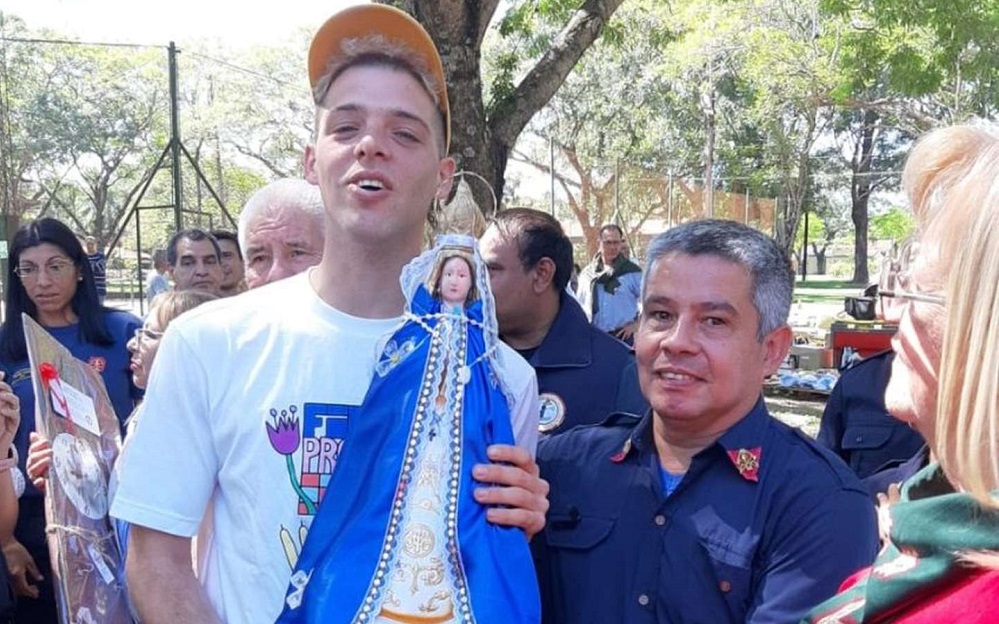El joven compartió luego fotografías y videos del encuentro con más de 100 bomberos en el predio correntino. Además, mostró lo donado a cada cuartel.